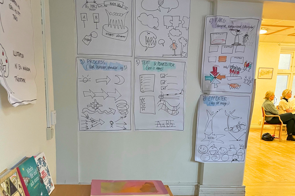 – Att illustrera eller rita det vi lär oss tillsammans kan användas som metod och som ett sätt för berättande. När vi använder bilder minns vi bättre vad vi lärt oss. Genom möjligheten att titta på hur en bild utvecklar sig och samtala tillsammans kring den hjälper det oss att se nya samband och synliggör både vad vi gemensamt ser och vad vi glömt i en bild. Det är viktigt att komma ihåg att detta alltså är ett metodiskt sätt att jobba med en grupp, dvs något alla kan lära sig med övning.
