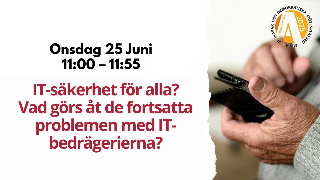 Under Almedalsveckan samlades representanter från civilsamhälle, myndigheter och finanssektorn för ett viktigt panelsamtal om IT‑bedrägerier riktade mot årsrika personer. Samtalet blev en tydlig uppföljning på förra årets initiativ – och lyfte både brister, ansvar och möjliga lösningar framåt.