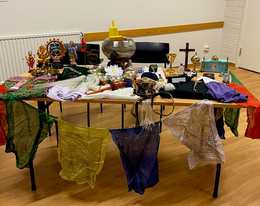 Ingrid Burström, verksamhetsutvecklar på Sensus, presenterade 2026 års multireligiösa almanacka. Även den multireligiösa väskan fanns på plats och väckte intresse. Med hjälp av föremål från olika religioner startades samtal om tro och livsfrågor.